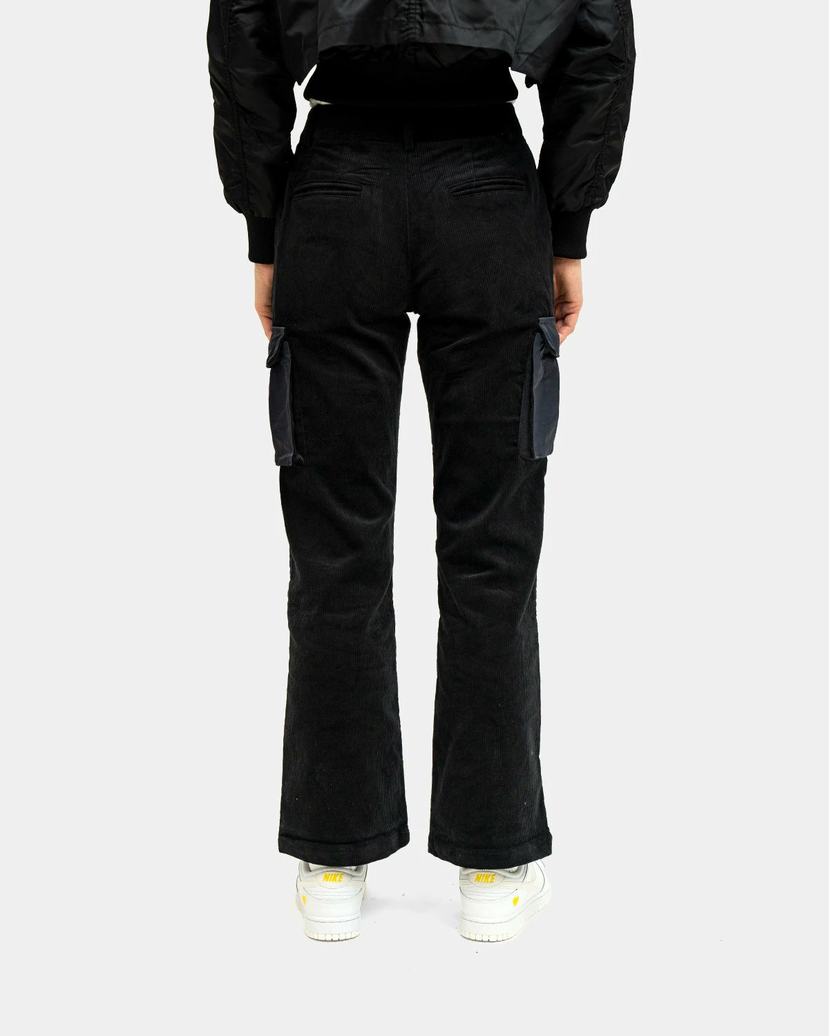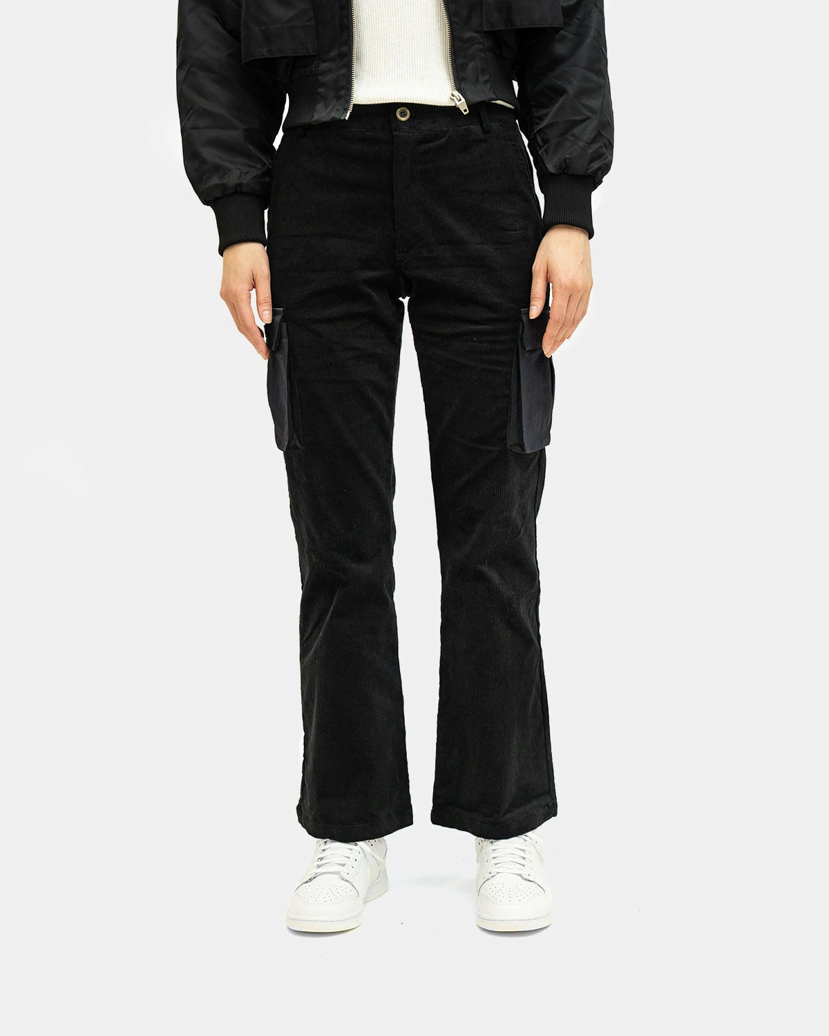 Corduroy pants with cargo pockets. The roomy flared silhouette enhances your style. These versatile bottoms go well with oversized tops and minimalistic tops.