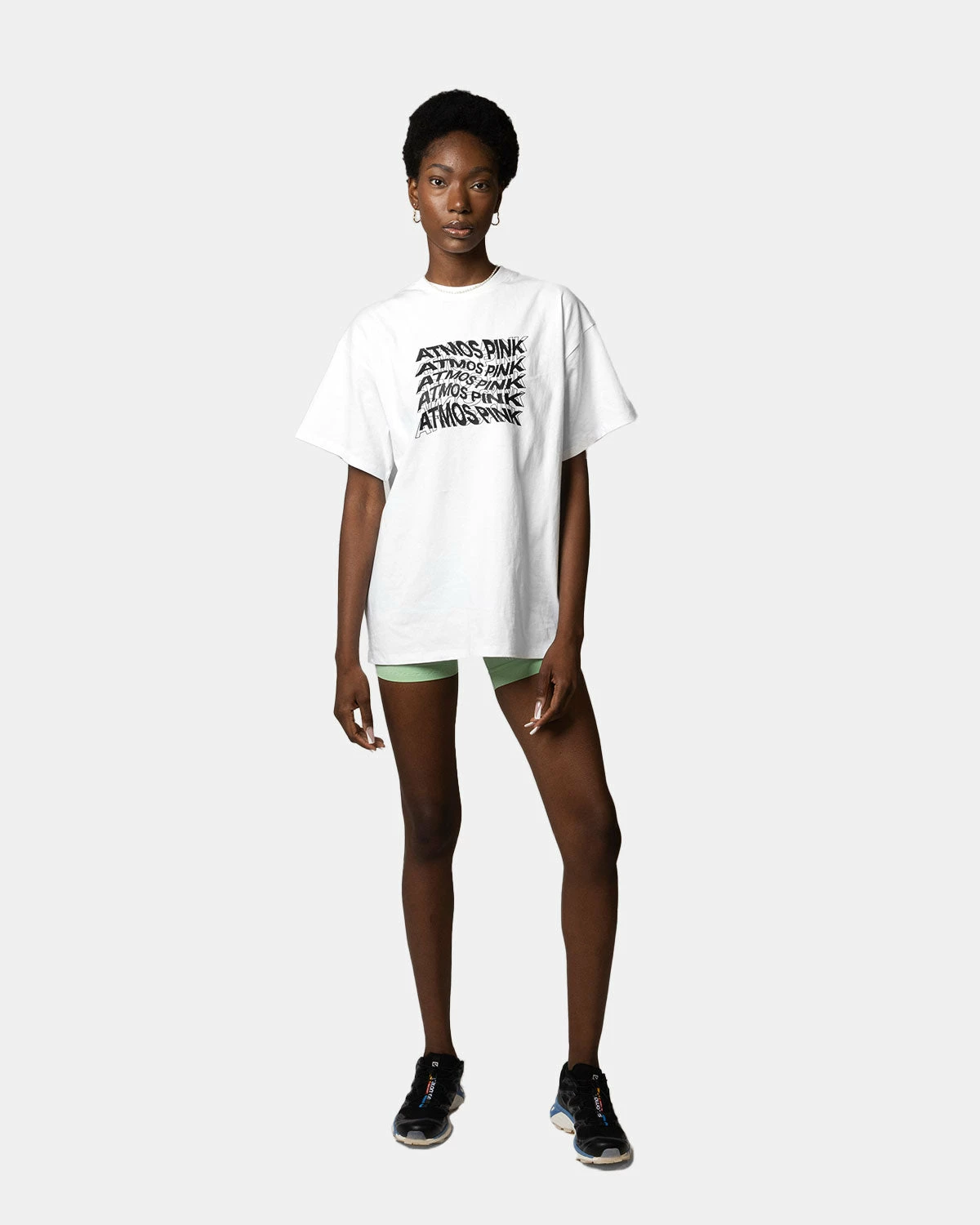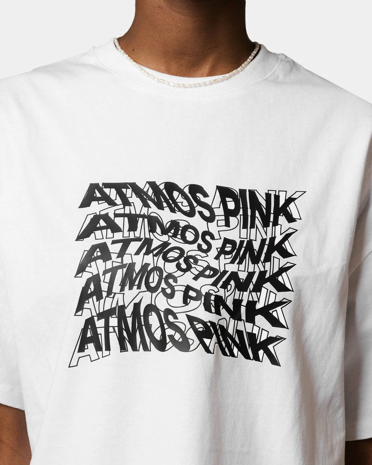 A big T-shirt featuring an atmos pink graphic logo print. It can be worn as a top, or worn as an inner layer with an outerwear or shirt, making it a useful item for a long time.