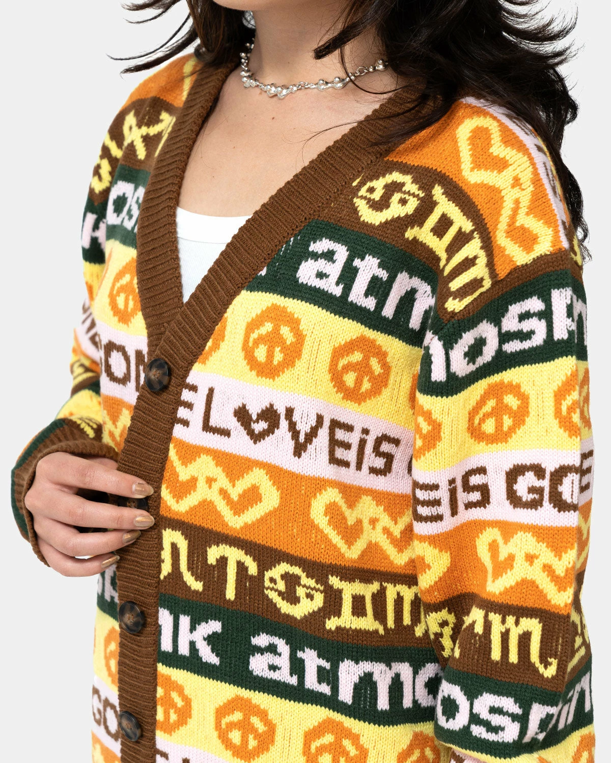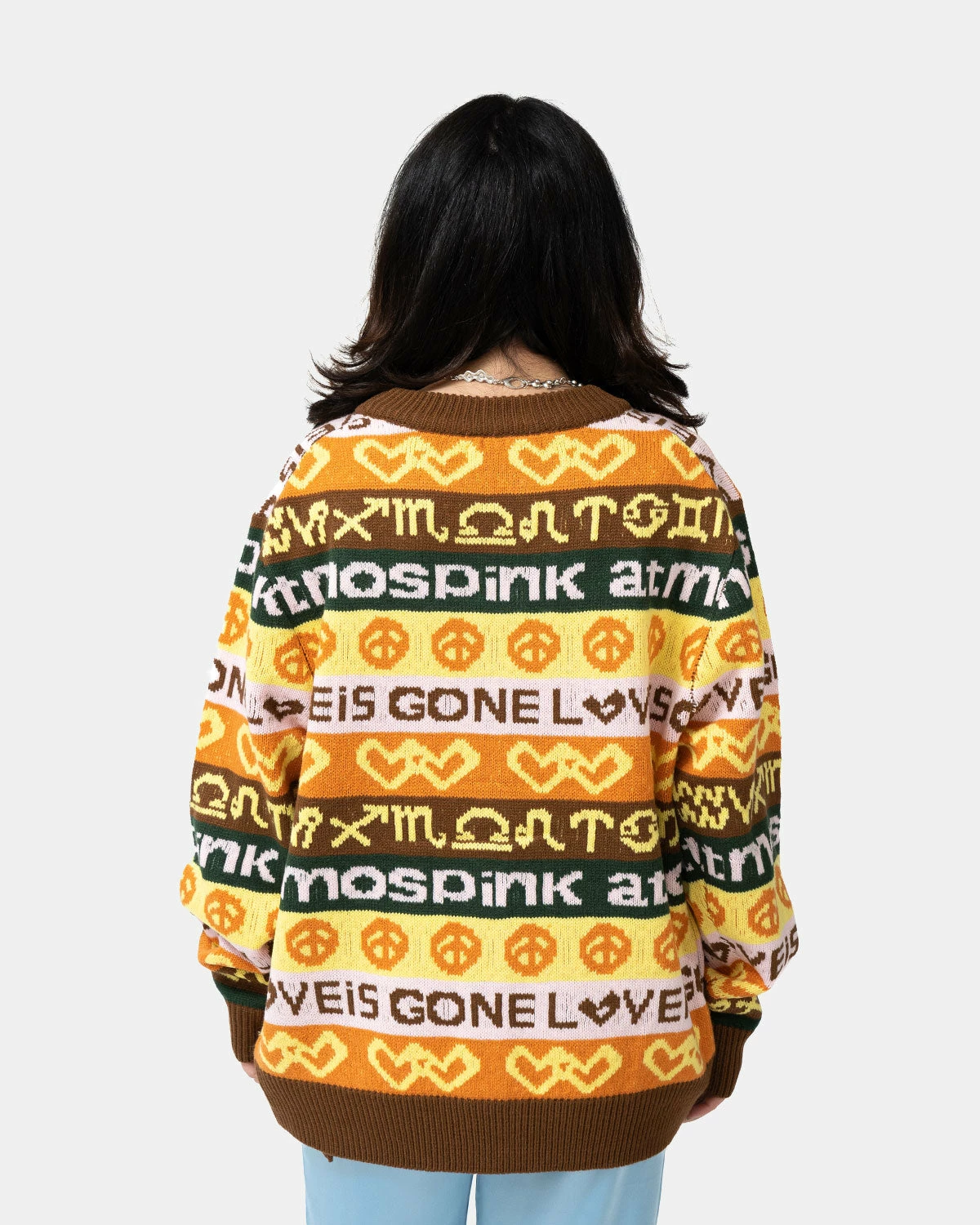 It features a catchy design with a handwritten logo jacquard knit!