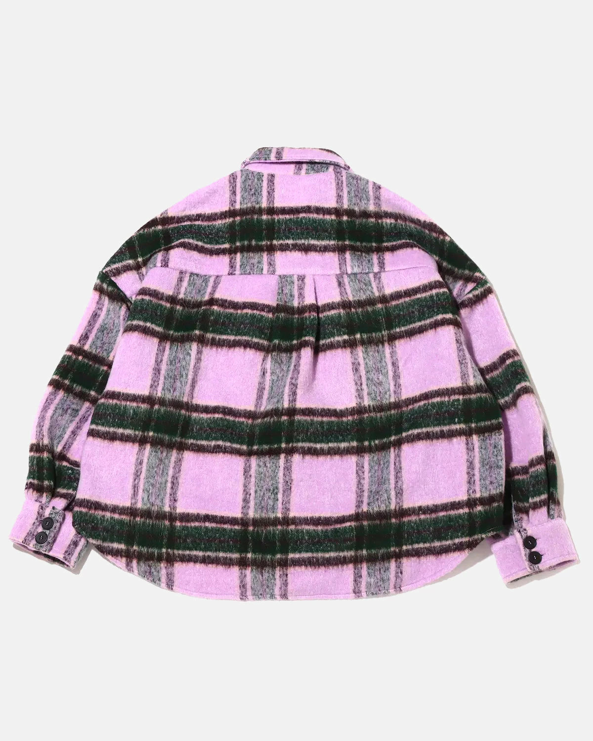A new color from the checkered shirt outerwear that is popular every season! Make it the focal point of your outfit with its bold plaid pattern. The brushed shaggy material makes this item perfect for autumn and winter. The loose silhouette allows you to wear a hoodie or sweater inside.
