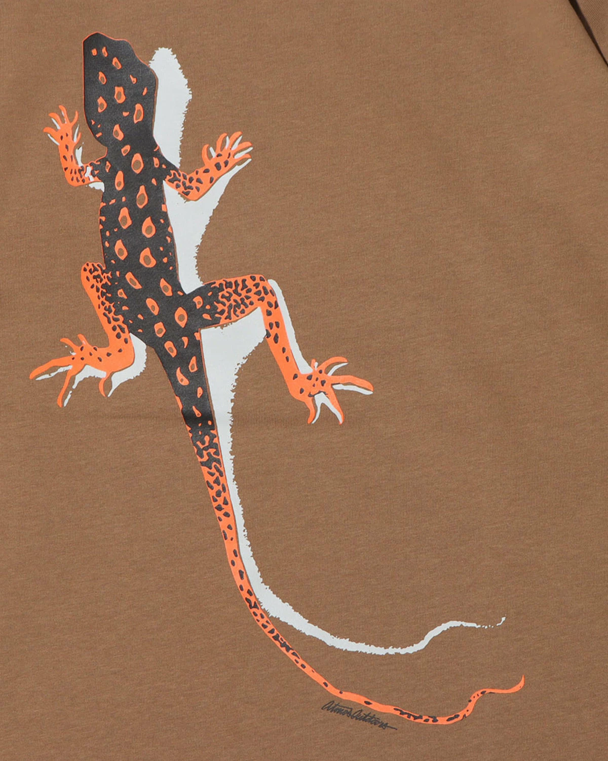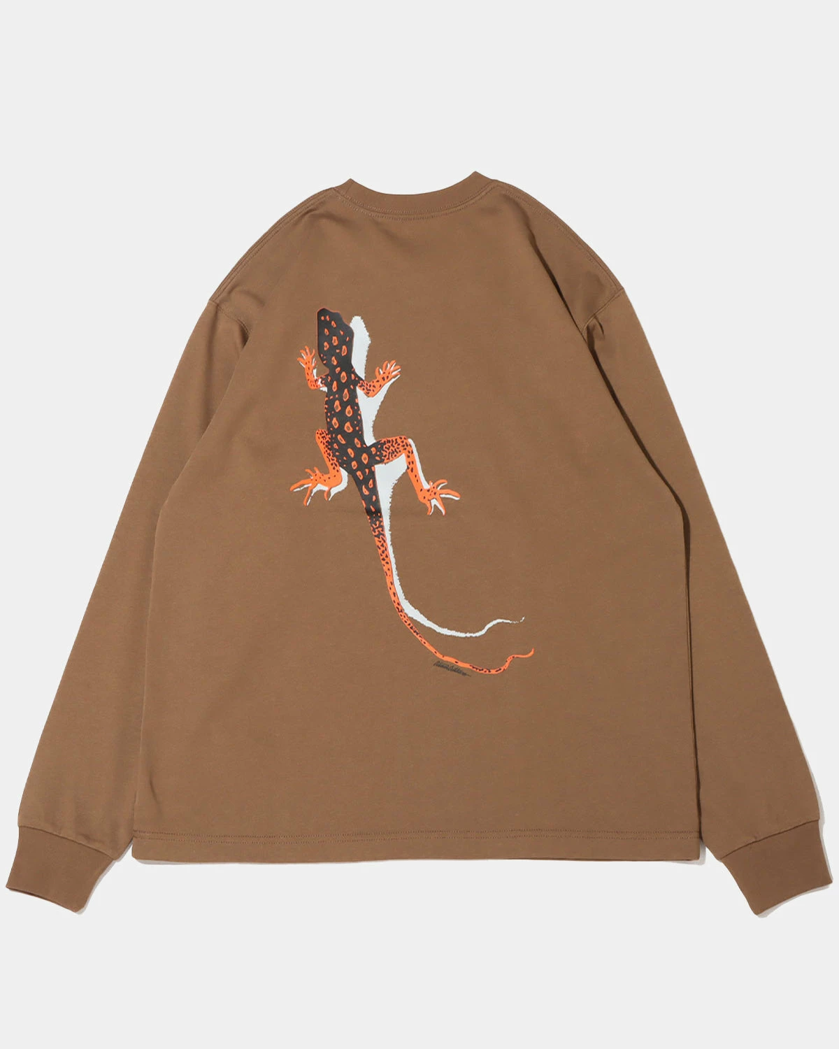 Atmos outdoor is printed on the left chest, and a lizard graphic is printed on the back. Designed with the outdoor motif, which is one of the themes of this season.