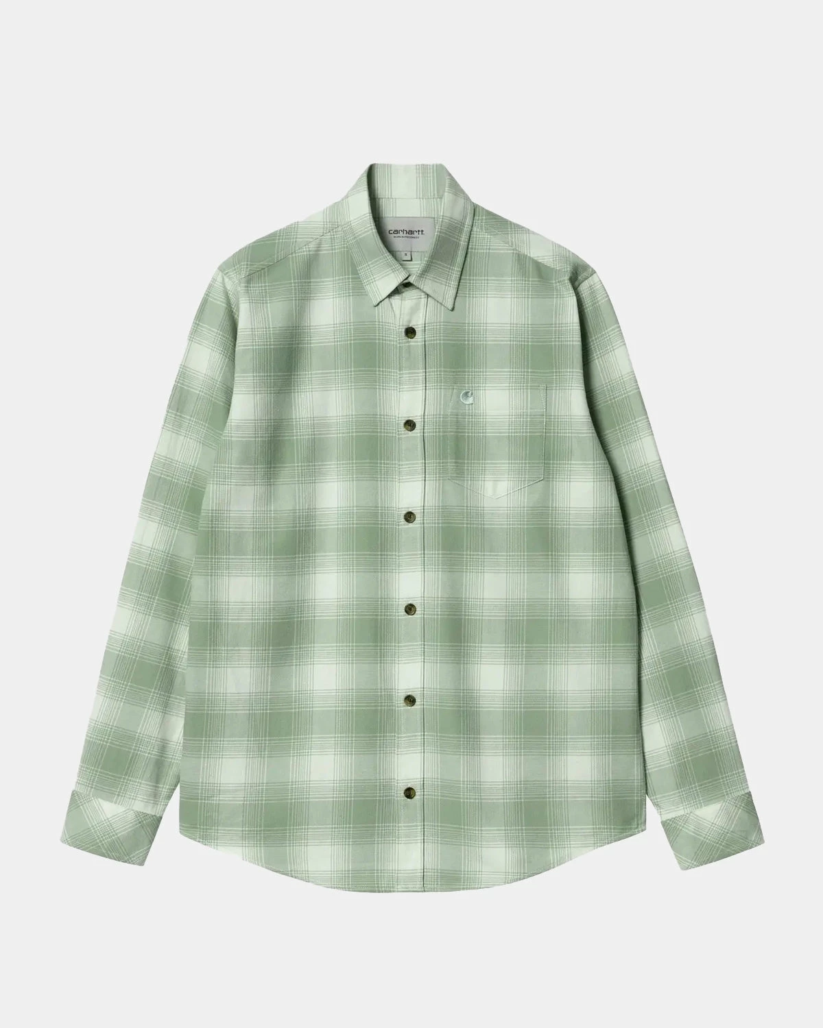 The L/S Deaver Shirt is a mid-weight, 4.7oz cotton flannel twill shirt with a regular fit and classic button-down collar. Featuring an all-over check pattern and a curved hem, the yarn-dyed shirt has been pre-washed for a softer feel. An embroidered Carhartt WIP “C” logo on the chest completes the design.