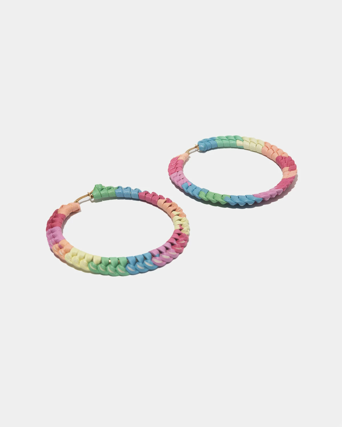 Details: In celebration of PRIDE we introduce the rainbow handwoven hoop. Perfect universal size hoop earring– polychromatic/ rainbow.