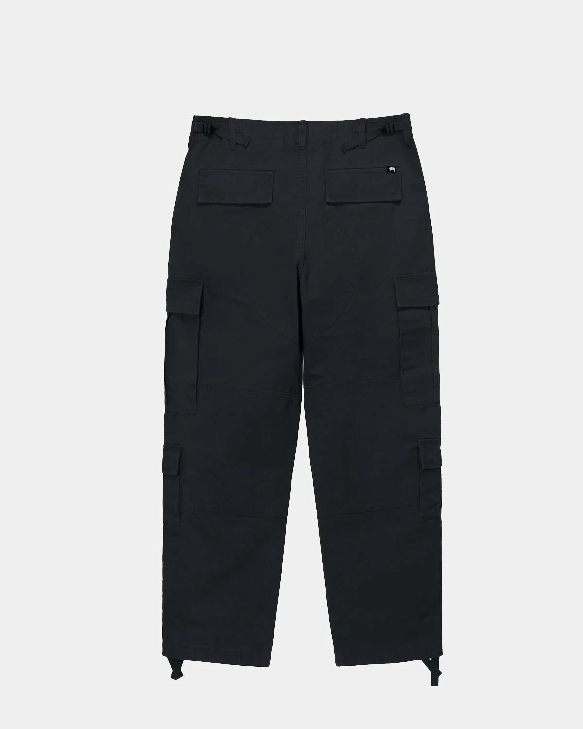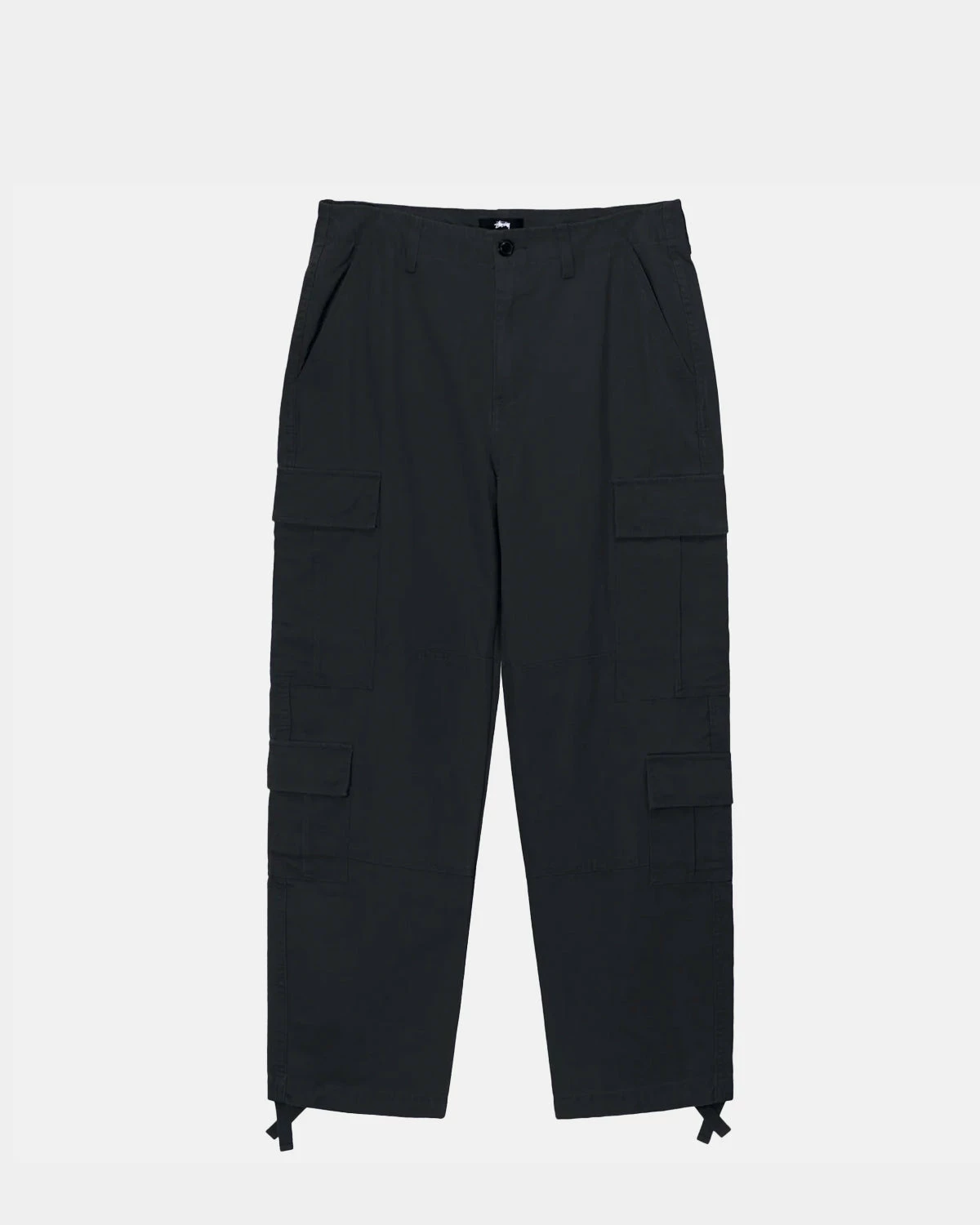- – Piece dyed, enzyme washed ripstop fabric- Two slant front pockets- Four patch pockets- Two rear pockets with snap closure- Fixed waistband with buckle adjusters- Metal zip fly- Double layer knee and seat panels
