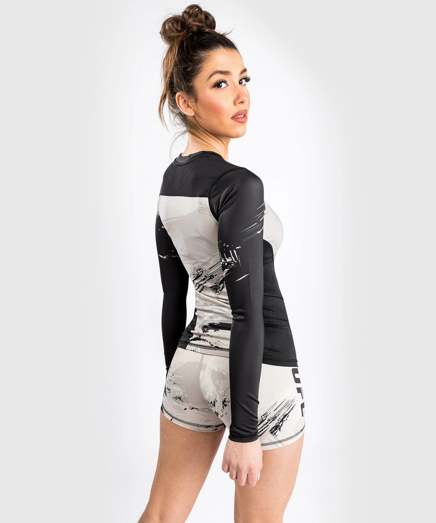 The UFC Venum Authentic Fight Week Women’s 2.0 performance long sleeve rash guard was designed to meet the needs of high-level athletes and fighters.